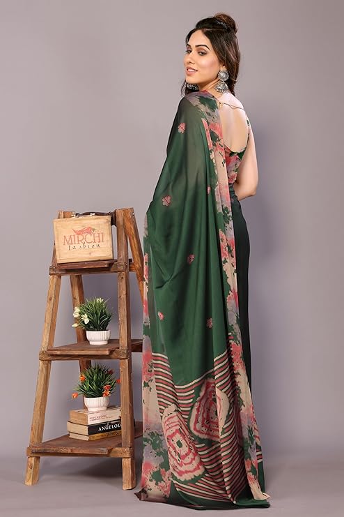 Silvoria Women's Georgette Digital Printed Ready-to-Wear One Minute Saree with Unstitched Blouse Piece