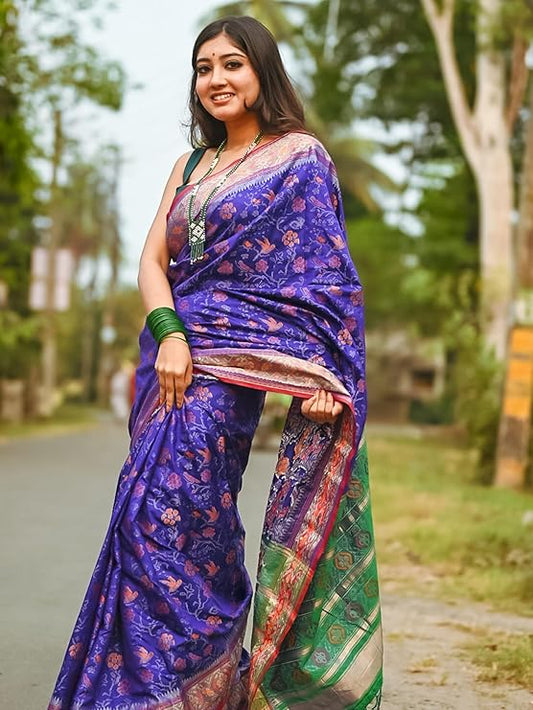 Eleganzia Women's Paithani Silk Blend Woven Saree with Matching Blouse Piece for Traditional Wear