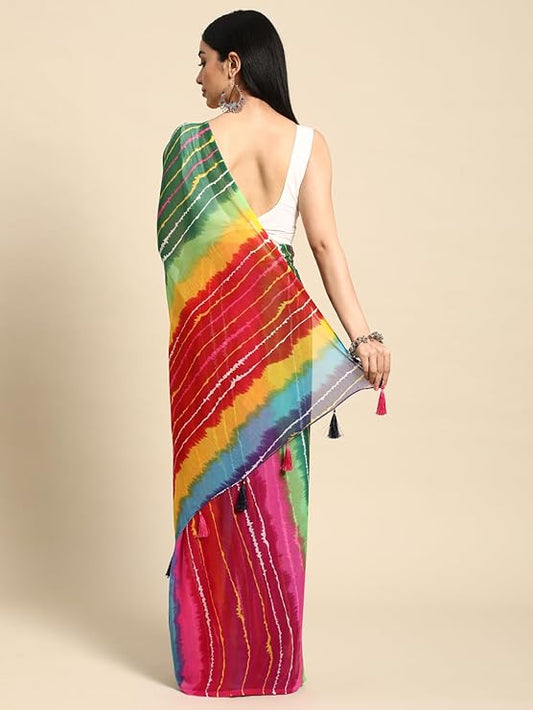 RIVERA STYLE Women's Chiffon Lehriya Printed Saree Without Blouse Piece, Elegant Multi-Color Design