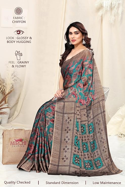 Grace Viona Women’s Elegant Floral Print Nara Chiffon Saree – Lightweight & Stylish Saree 59599